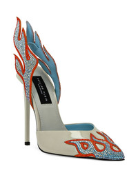 120mm flame-detail stiletto heels Highlights - Beige - Pointed toe - Flame embellishments - Crystal detailing - Open back design - 120mm heel height Made in Italy Composition Outer: Goat Skin 100%, Calf Leather 100%, glass 100% Lining: Lambskin 100% Sole: Calf Leather 100% SIZE & FIT Measurement HEEL 4.72 in(12 cm)