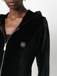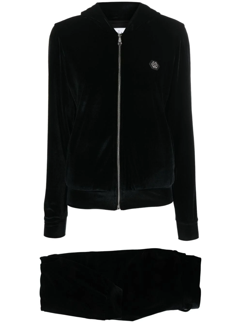 3D Skull velvet tracksuit (set of two) Highlights - Jet black - Velvet finish - Top: - Skull applique - Tonal logo plaque - Classic hood - Front zip fastening - Long sleeves - Elasticated cuffs and hem - Bottoms: - Tonal logo plaque - Elasticated drawstring waistband - Two side slash pockets - Elasticated ankles - Tapered leg Imported Composition Polyester 100% SIZE & FIT Model measurements Height 5 ft 10 in(1.78 m) Bust/Chest 31.49 in(80 cm) Hips 37 in(94 cm) Waist 23.62 in(60 cm) FittingInformation Designed for a slim fit, these trousers offer a close fit at the waist, allowing a comfortable close fit and some movement over the leg The elasticated waist allows for a comfortable fit Made from a midweight non-stretch fabric, this piece offers minimal elasticity when worn This piece fits true to size – take your usual size Washing instructions Hand Wash
