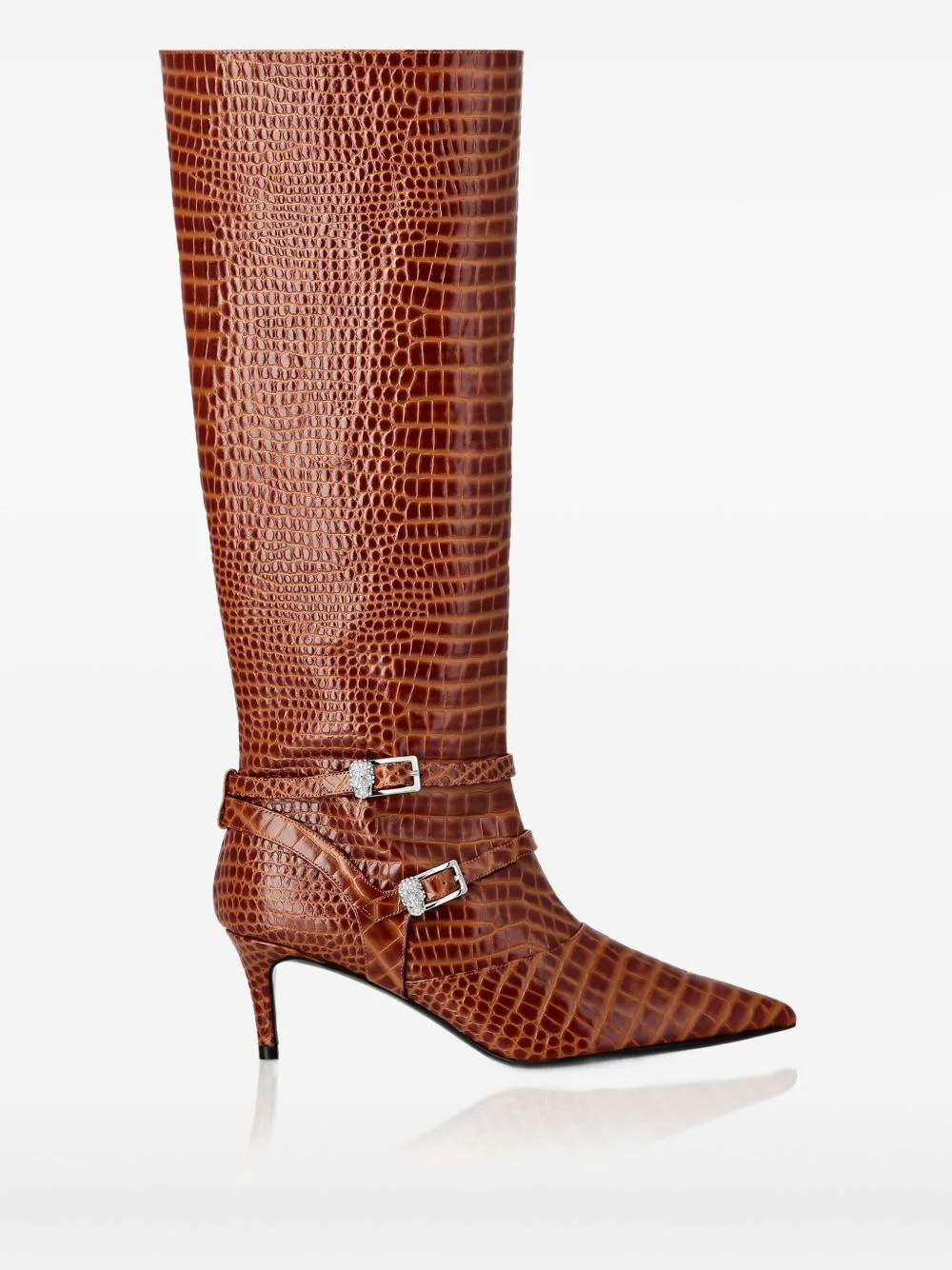 55mm crocodile-embossed boots Highlights - Brown - Embossed crocodile effect - Mid heel - Pointed toe - Decorative buckle detailing Made in Italy Composition Outer: Calf Leather 100% Lining: Lambskin 100% Sole: Calf Leather 100% SIZE & FIT Measurement HEEL 1.96 in(5 cm)