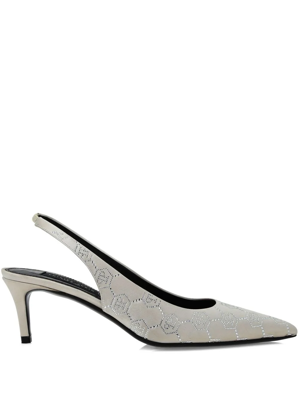 55mm rhinestone monogram slingback pumps Highlights - Light grey - Slingback strap - Rhinestone embellishment - Logo at the sole Made in Italy Composition Sole: Calf Leather 100% Outer: Viscose 100%, glass 100% Lining: Lamb Skin 100% SIZE & FIT Measurement HEEL 2.16 in(5.5 cm)