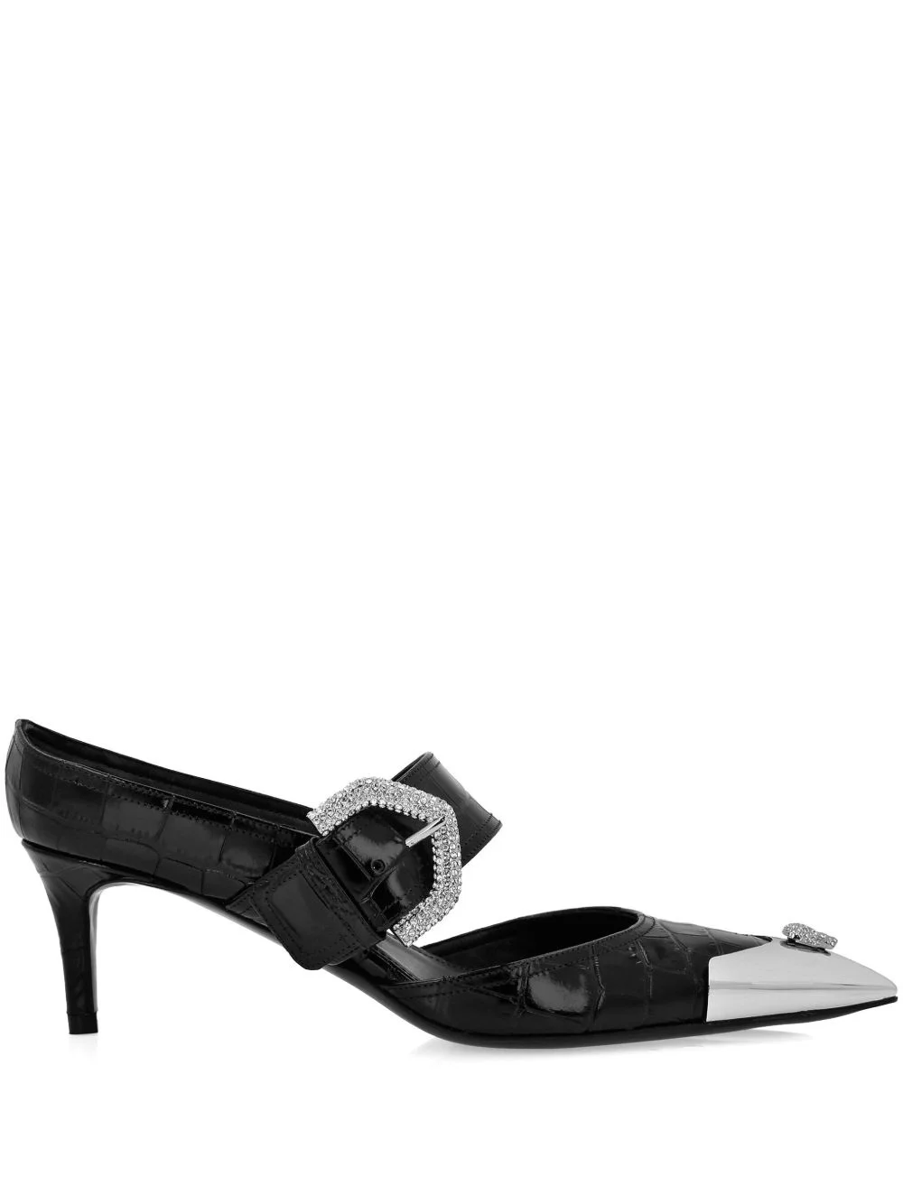 55mm rhinestone-skull mules Highlights - Black - Pointed toe - Side buckle fastening - Rhinestone embellishment Made in Italy Composition Lining: Lamb Skin 100% Sole: Calf Leather 100% Outer: Calf Leather 100% SIZE & FIT Measurement HEEL 2.16 in(5.5 cm)