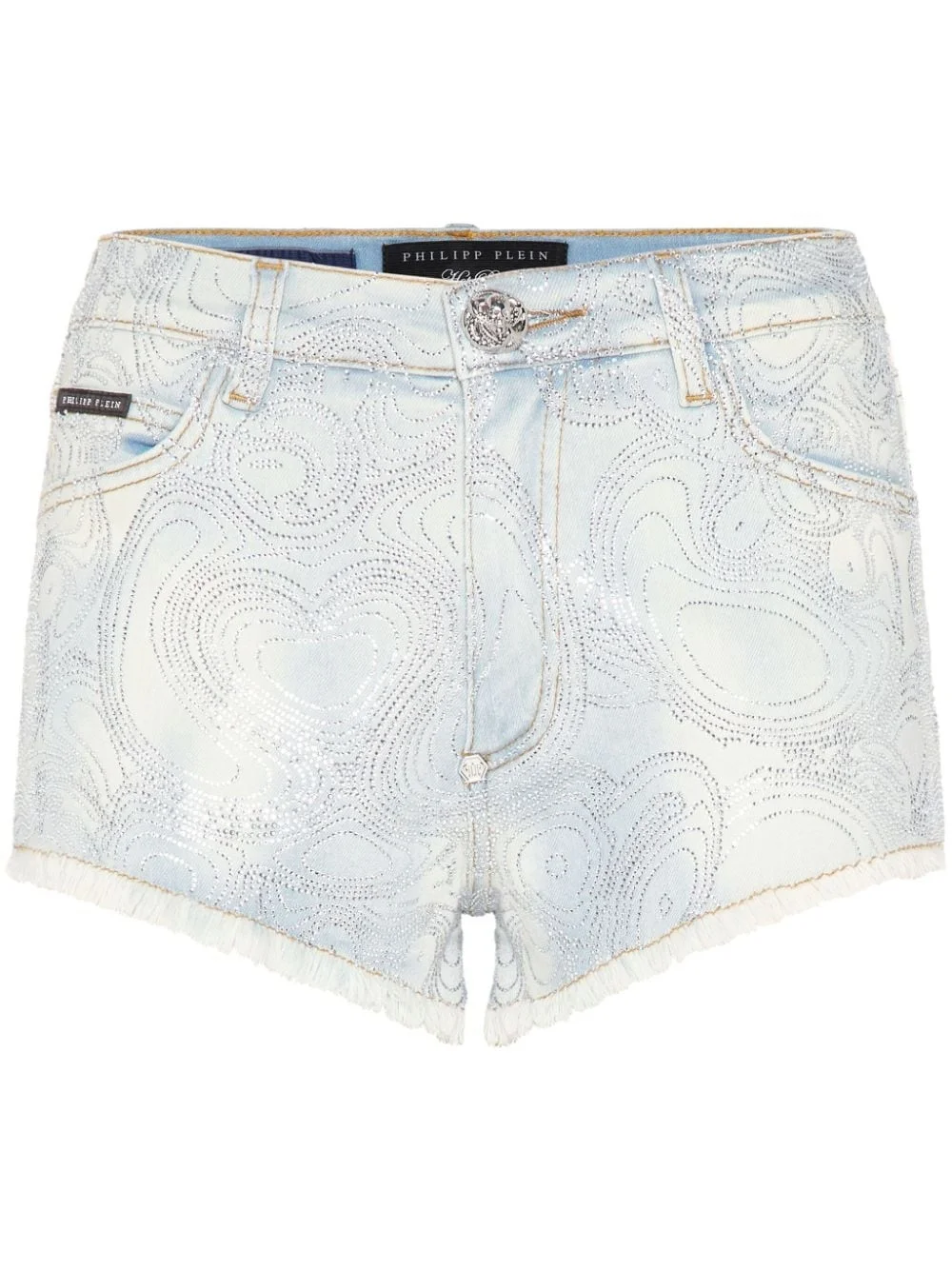 abstract-pattern print denim shorts Highlights - Light blue - Cotton blend - Stretch-design - Frayed edge - Abstract pattern print - Mini logo tag - Logo patch to the rear - Belt loops - Front button fastening - Classic five pockets - Thigh-length Imported Composition Cotton 92%, Elastomultiester 6%, Elastane 2%