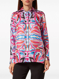 all-over graphic-print silk shirt Highlights - Pink/multicolour - Silk - All-over graphic print - Concealed front fastening - Classic collar - Long sleeves - Straight hem Made in Italy Composition Silk 100% Washing instructions Read Manufacturer Guidelines