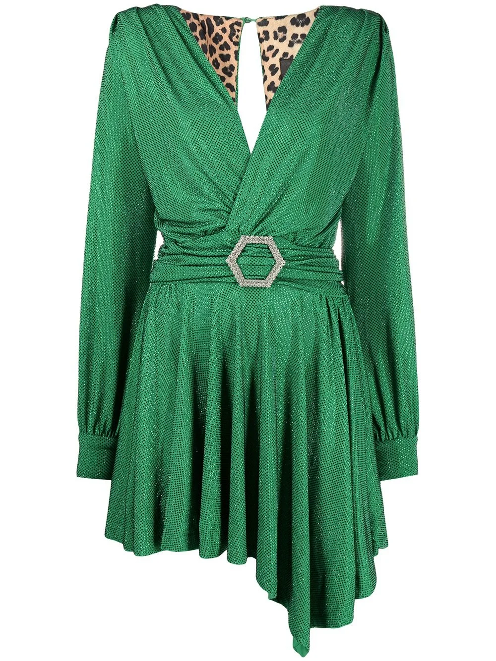 Artemis crystal embellished mini dress Highlights - Green - Crystal embellishment - Gathered detailing - V-neck - Long sleeves - Buttoned cuffs - Rear button and zip fastening - Open back - Belted waist - Crystal buckle detail - Asymmetric hem Imported Composition Outer: glass 100%, Polyester 95%, Spandex/Elastane 5% Lining: Polyester 95%, Spandex/Elastane 5% Washing instructions Specialist Cleaning