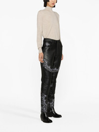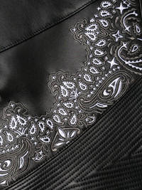 bandana-panelling skinny leather trousers Philipp Plein channels rock and biker influences with these black trousers. Produced from buttery lambskin to a skinny fit, they are detailed with contrasting bandana panels and multiple zips. Highlights - Black - Lambskin - Bandana print - Contrasting panel detail - Quilted panels - Logo patch to the rear - Zip details - Skinny cut - Belt loops - Front button and zip fastening - Classic five pockets - Ankle zips Imported Composition Outer: Lamb Skin 100% Lining: Polyester 97%, Elastane 3% SIZE & FIT Model measurements Height 5 ft 10 in(1.78 m) Bust/Chest 29.92 in(76 cm) Hips 34.64 in(88 cm) Waist 23.62 in(60 cm) FittingInformation Designed for a slim fit, these trousers offer a close fit at the waist, allowing a comfortable close fit and some movement over the leg Made from a midweight non-stretch fabric This piece fits true to size – take your usual size