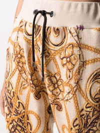 baroque-jacquard fleece sweatpants beige/gold cotton baroque-intarsia knit drawstring waist tapered leg ribbed cuffs Made in Italy Composition Cotton 100% SIZE & FIT Model measurements Height 5 ft 10 in(1.79 m) Bust/Chest 33.07 in(84 cm) Hips 35.82 in(91 cm) Waist 24.01 in(61 cm) FittingInformation This piece fits true to size. We recommend you get your regular size Designed to be loose over the leg with a fitted waist and hem Made with a mid-weight fabric Washing instructions Hand Wash