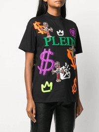 baroque logo detail T-shirt Highlights - Black - Cotton - Round neck - Short sleeves - Embroidered design - Sequin detailing Made in Italy Composition Cotton 100% SIZE & FIT Model measurements Height 5 ft 10 in(1.79 m) Bust/Chest 32.67 in(83 cm) Hips 35.43 in(90 cm) Waist 25.98 in(66 cm) FittingInformation This piece fits true to size. We recommend you get your regular size Cut for a relaxed fit Made with a mid-weight fabric Washing instructions Hand Wash