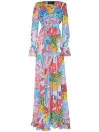 Bombing Graffiti-print maxi dress Highlights - Multicolour - Chiffon - All-over graphic print - Gathered detailing - Crystal embellishment - V-neck - Long sleeves - Flared cuffs - Side slit - Long length - Straight hem Made in Italy Composition Outer: Silk 97%, Elastane 22%, Polyester 3% Lining: Polyester 78%