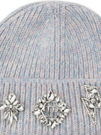 brooch-detail beanie Highlights - Light blue - Wool - Ribbed knit - Brooch detail - Crystal embellishment - Oval crown - Turn-up brim Made in Italy Composition Wool 100%