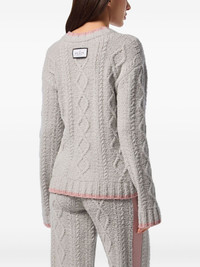 cable-knit v-neck sweater Highlights - Grey - Cable knit - V-neck - Embroidered logo - Long sleeves Made in Italy Composition Wool 81%, Polyamide 12%, Acrylic 7% Washing instructions Read Manufacturer Guidelines