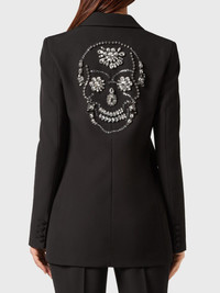 Cady Boxy single-breasted blazer Highlights - Black - Crystal embellishment - Notched lapels - Leopard print lining - Buttoned-cuff sleeves - Long sleeves - Front button fastening - Two front flap pockets - Straight hem Made in Italy Composition Polyester 95%, Elastane 5%