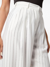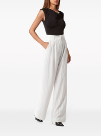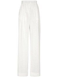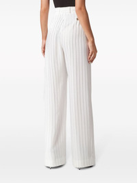 striped tailored trousers Highlights - White - Pinstripe pattern - Crystal embellishment - Logo patch to the rear - Belt loops - High-waisted - Wide leg - Long length - Concealed front fastening - Slip pockets to the sides Made in Italy Composition Acetate 70%, Viscose 30%