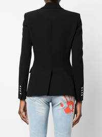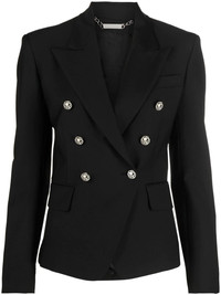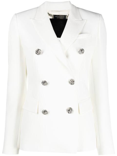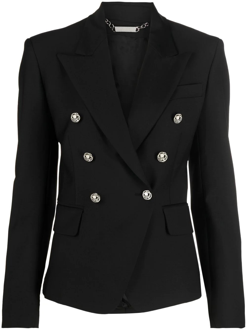 Cady double-breasted blazer Philipp Plein imbues a classic silhouette with its signature rock'n'roll flair. The double-breasted design is recognisable thanks to the silver-tone skull buttons that encapsulate the designer's edgy spirit. Composition Outer: Polyester 89%, Elastane 11% Lining: Viscose 100% SIZE & FIT Model measurements Height 5 ft 10 in(1.78 m) Bust/Chest 31.1 in(79 cm) Hips 35 in(89 cm) Waist 22.8 in(58 cm) FittingInformation This piece fits true to size. We recommend you get your regular size Cut for a slim fit Made with a mid-weight fabric