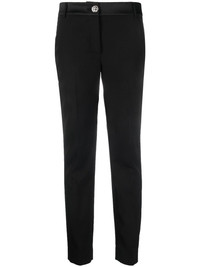 Cady high-waist trousers Highlights - Black - Stretch-design - Satin trim - Decorative button detailing - Pressed crease - Button fly fastening - Straight leg - Two diagonal pockets to the sides - Two rear welt pockets Made in Italy Composition Outer: Polyester 89%, Spandex/Elastane 11% Lining: Polyester 100% Washing instructions Dry Clean Only
