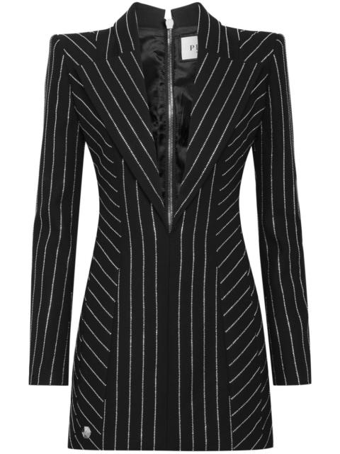 crystal-embellished mini dress Highlights - Black/white - Pinstripe pattern - Wide peak lapels - Plunging v-neck - Shoulder pads - Long sleeves - Rear zip fastening - Straight hem - Thigh-length Made in Italy Composition Outer: Viscose 51%, Acetate 49%, Spandex/Elastane 3% Lining: Viscose 100%