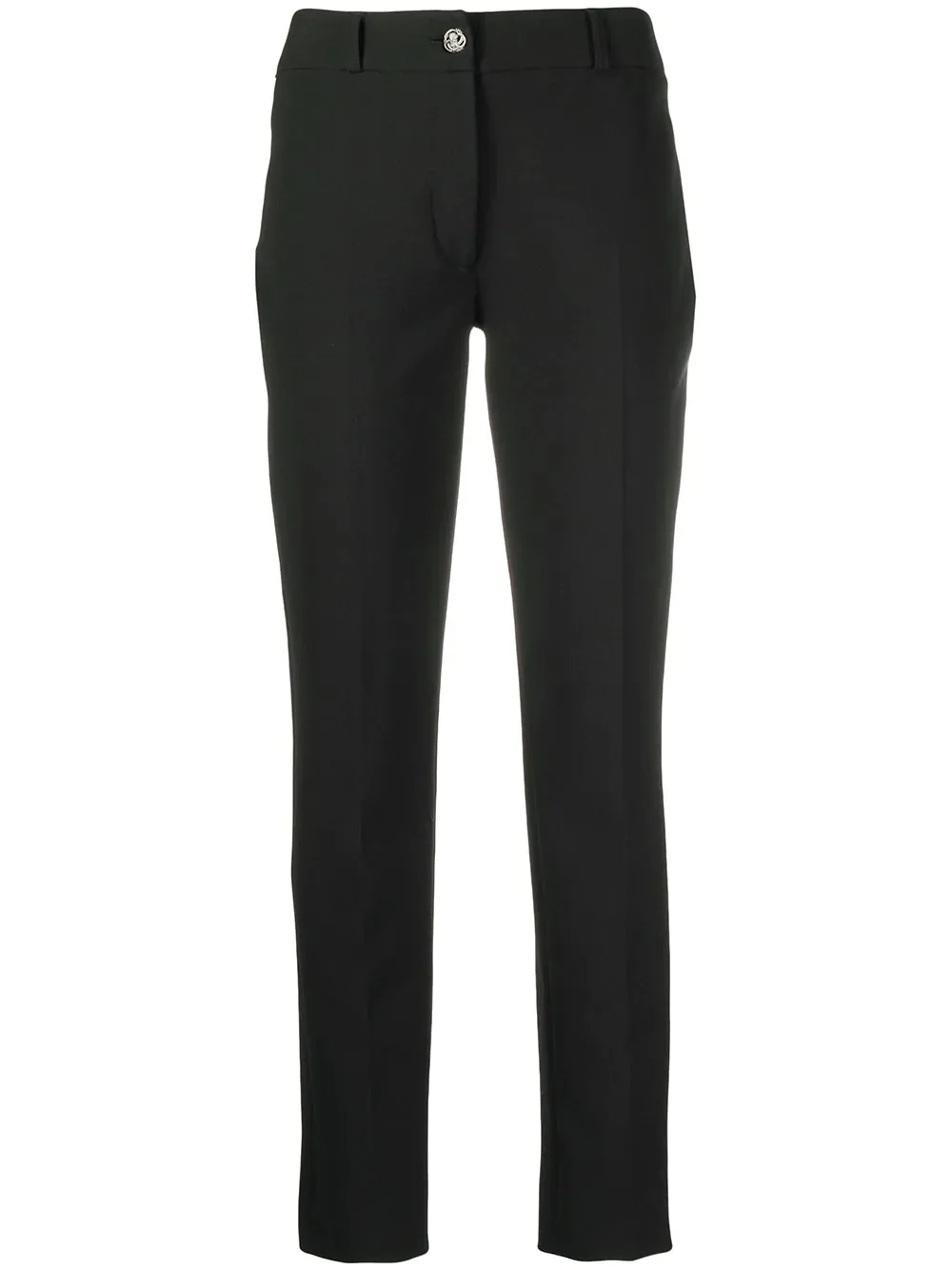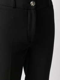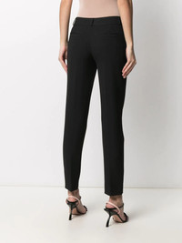 cady slim-fit trousers black high waist belt loops front button and zip fastening slim cut Made in Italy Composition Outer: Polyester 63%, Viscose 27%, Cotton 7%, Spandex/Elastane 3% Lining: Polyester 100% SIZE & FIT Model measurements Height 5 ft 10 in(1.78 m) Bust/Chest 33.07 in(84 cm) Hips 35.82 in(91 cm) Waist 25.98 in(66 cm) FittingInformation This piece fits true to size. We recommend you get your regular size Cut for a slim fit Made with a mid-weight stretch fabric Washing instructions Dry Clean Only