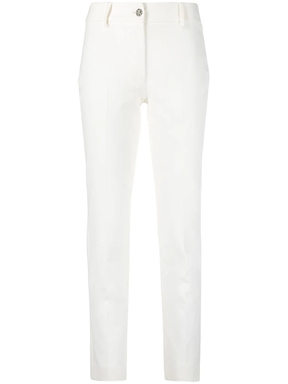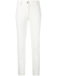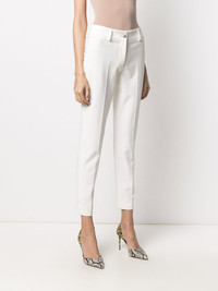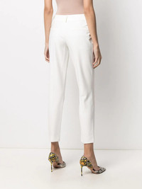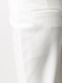 cady slim-fit trousers white high waist belt loops concealed front fastening slim cut Made in Italy Composition Outer: Viscose 61%, Cotton 30%, Spandex/Elastane 9% Lining: Polyester 100% SIZE & FIT Model measurements Height 5 ft 11 in(1.8 m) Bust/Chest 29.92 in(76 cm) Hips 34.64 in(88 cm) Waist 24.01 in(61 cm) FittingInformation This piece fits true to size. We recommend you get your regular size Cut for a slim fit Made with a mid-weight stretch fabric Washing instructions Dry Clean Only
