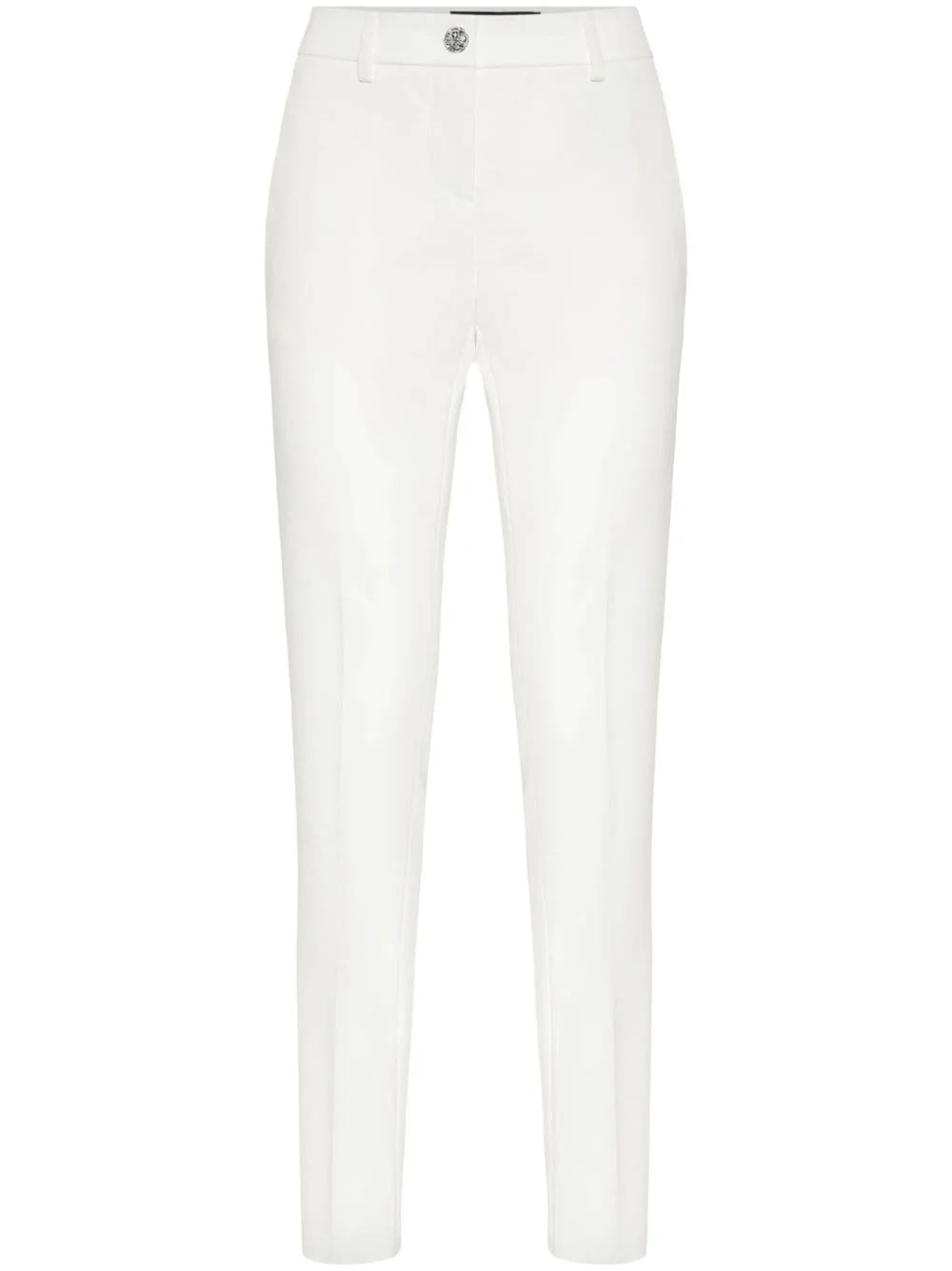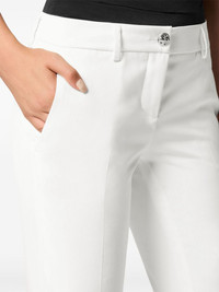 mid-rise slim-fit trousers Highlights - White - Mid-rise - Belt loops - Front button and zip fastening - Two side inset pockets - Slim cut Made in Italy Composition Outer: Polyester 88%, Elastane 12% Lining: Polyester 100%