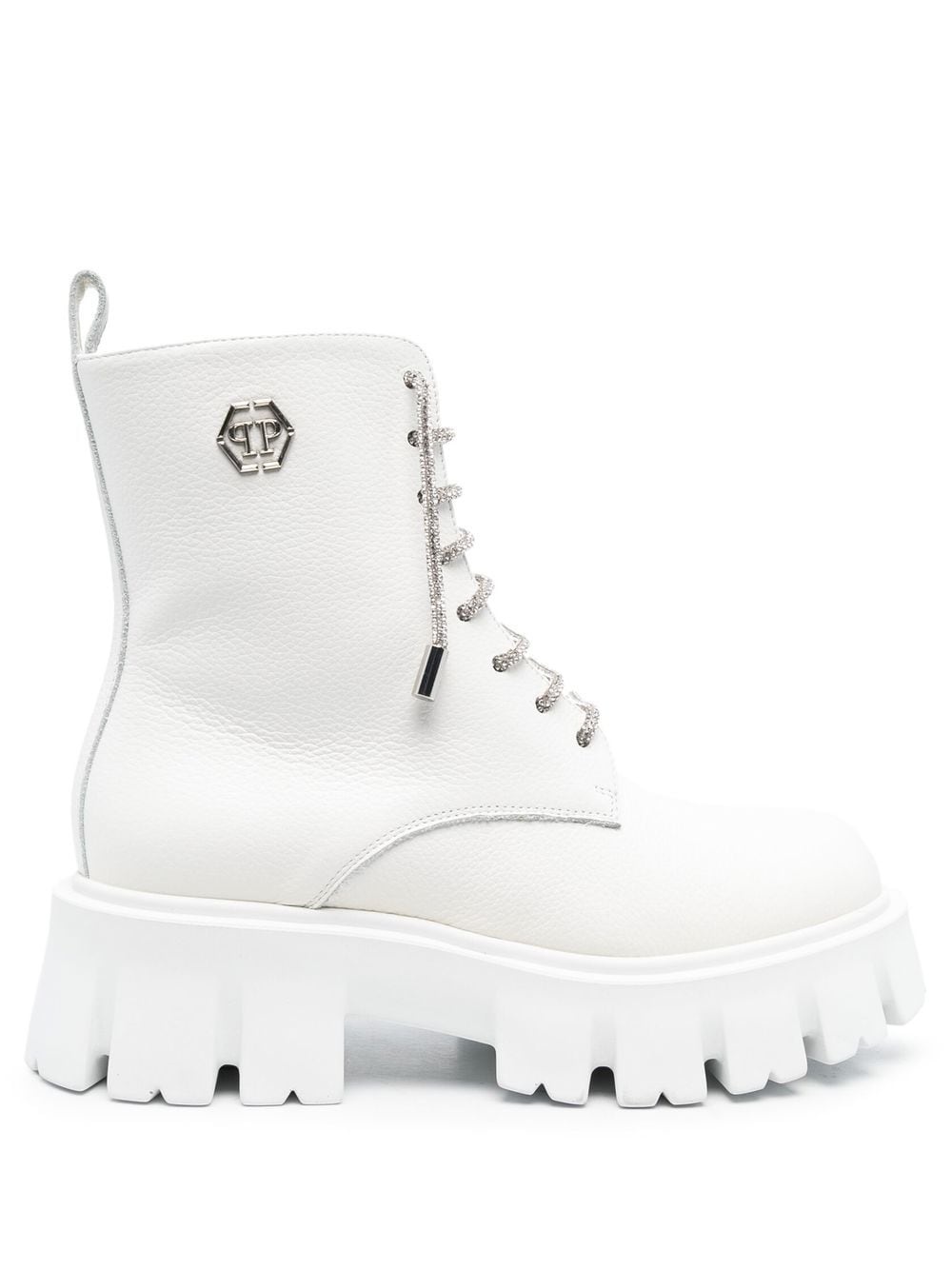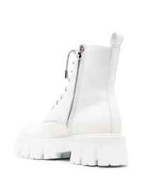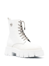 calf-leather ankle boots Highlights - White/silver-tone - Calf leather - Metallic threading - Embossed logo to the side - Front lace-up fastening - Round toe - Pull-tab at the heel - Ankle-length - Platform sole Made in Italy Composition Outer: Calf Leather 100% Lining: Calf Leather 100% Sole: Rubber 100% SIZE & FIT Measurement HEEL 2 in(5 cm) HEIGHT 6.3 in(16 cm) Sole height 1.4 in(3.5 cm)