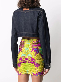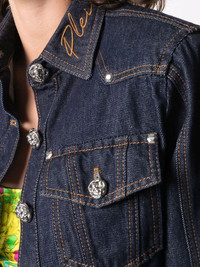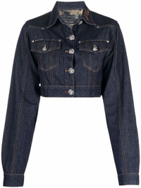 Chains cropped denim jacket indigo blue cotton embroidered logo at the collar logo patch to the rear classic collar front button fastening long sleeves buttoned cuffs two button-fastening chest pockets cropped Imported Composition Lining: Polyester 100% Outer: Cotton 100% SIZE & FIT Model measurements Height 5 ft 9 in(1.76 m) Bust/Chest 33.07 in(84 cm) Hips 34.64 in(88 cm) Waist 25.59 in(65 cm) Washing instructions Dry Clean Only