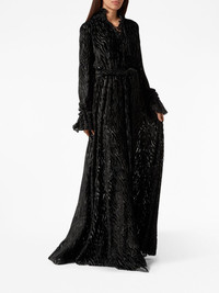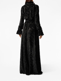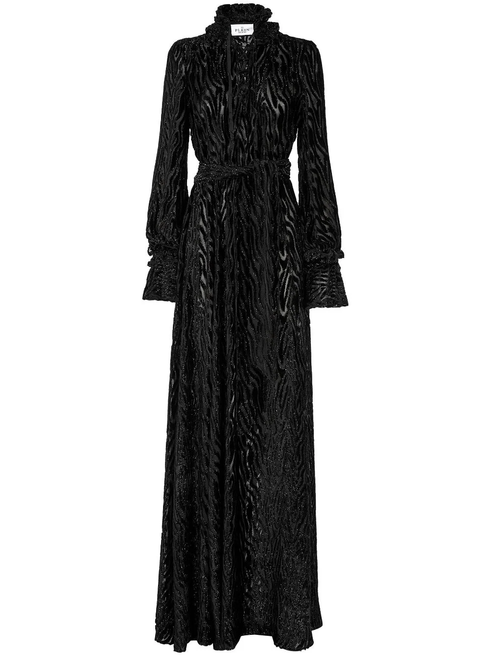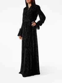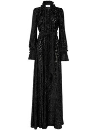 Chiffon Gipsy devore-effect dress Highlights - Black - Devore effect - Frilled high neck - Long sleeves - Ruffle cuffs - Belted waist - Front tie fastening - Extra-long length Made In Italy Composition Viscose 61%, Silk 24%, Nylon 15%