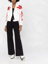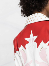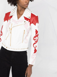 cowboy intarsia leather jacket white/red all-over graphic print off-centre front zip fastening long sleeves Imported Composition Outer: Lamb Skin 100% Lining: Polyester 97%, Elastane 3% SIZE & FIT Model measurements Height 5 ft 10 in(1.78 m) Bust/Chest 29.52 in(75 cm) Hips 35.03 in(89 cm) Waist 22.83 in(58 cm) FittingInformation This piece fits true to size. We recommend you get your regular size Cut for a slim fit Made with a mid-weight fabric Washing instructions Specialist Cleaning