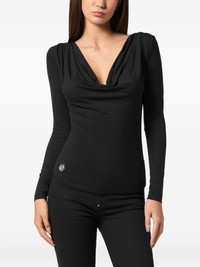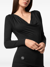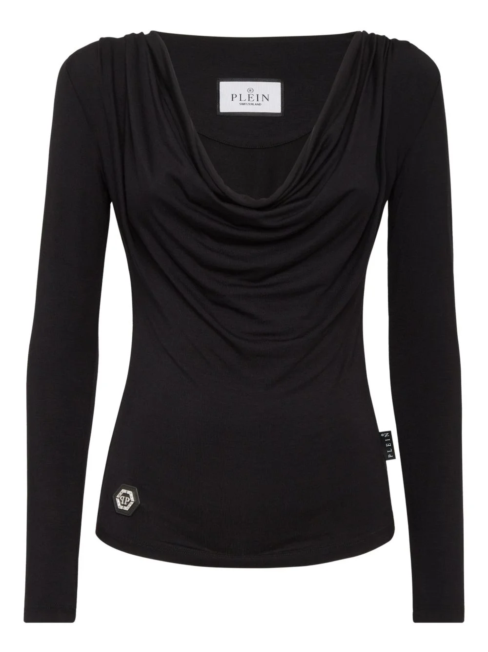 cowl-neck long-sleeve top Highlights - Black - Cowl neck - Long sleeves - Draped detail - Embroidered logo - Logo plaque Imported Composition Polyester 100%, Modal 95%, Elastane 5% Washing instructions Read Manufacturer Guidelines