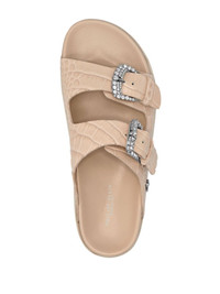 crocodile-effect leather sandals Highlights - Beige - Crocodile leather strap - Buckle-strap fastening - Crystal embellishment - Round open toe - Ridged rubber sole - Unfortunately, we are unable to ship this item outside of the eu & uk. Made in Italy Composition Leather 100%