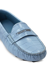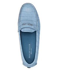 crocodile-embossed loafers Highlights - Light blue - Logo plaque detail - Front apron design - Slip-on style - Rubber pebble sole Made in Italy Composition Sole: Rubber 100% Lining: Calf Leather 100% Outer: Calf Leather 100%