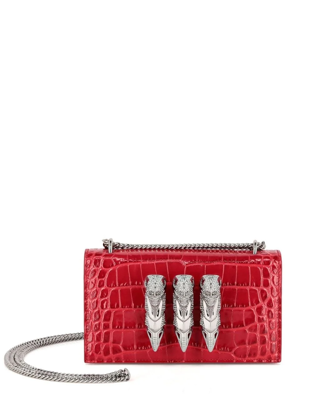 crocodile-embossed shoulder bag Highlights - Ruby red - Calf leather - Patent finish - Embossed crocodile effect - Foldover top with magnetic fastening - Chain-link shoulder strap - Silver-tone logo plaque - Main compartment Made in Italy Composition Leather 100%