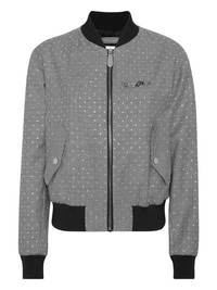 cropped bomber jacket Highlights - Black - Front zip fastening - Baseball collar - Logo-embroidered collar - Two diagonal pockets to the sides Made in Italy Composition Outer: glass 100%, Polyester 65%, Viscose 32%, Elastane 3% Lining: Acetate 52%, Viscose 48%