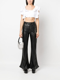 cropped ruffle-trimmed top cloud white cotton cropped ruffle detailing round neck sleeveless Made in Italy Composition Cotton 100% SIZE & FIT Model measurements Height 5 ft 11 in(1.8 m) Bust/Chest 33.07 in(84 cm) Hips 37.4 in(95 cm) Waist 25.19 in(64 cm) FittingInformation Designed for a close fit throughout The tie fastening gives an adaptable and personalised fit Made from a midweight non-stretch fabric This piece fits true to size – take your usual size Washing instructions Hand Wash
