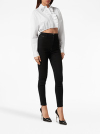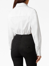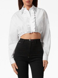 cropped ruffled cotton shirt Highlights - White - Ruffled detailing - Cropped - Long sleeves - Elasticated hem - Front button fastening - Crystal embellishment Made in Italy Composition Cotton 100%