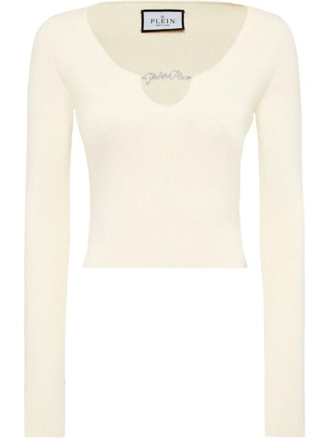 cropped top Highlights - White - V-neck - Long sleeves - Cropped Made in Italy Composition Viscose 83%, Polyester 17%