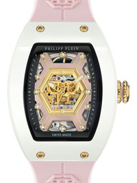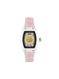 Crypto Queen CHERRY BLOSSOM ICE QUEEN 55mm Highlights - 55 x 45 mm - White/pink - Ceramic - Tonneau face - Skeleton dial - Diamond dial - Baton hands - Applique logo - Automatic movement - Screw-down crown - Logo-embossed strap - Pin-buckle fastening - This item comes with a standard one-year warranty from the brand. - Normal everyday use and external agents may reduce the lustre of gemstones and gold surfaces. to maintain, use specific, non-abrasive products specially meant for cleaning jewellery. Imported SIZE & FIT Measurement DIAMETER 2.4 in(6.1 cm) Minimum Length 7.28 in(18.5 cm) Thickness 0.66 in(1.7 cm) TOTAL LENGTH 9.05 in(23 cm) WIDTH 1.1 in(2.8 cm)