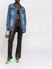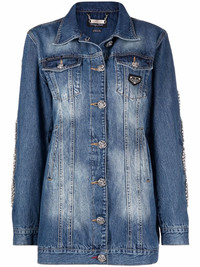 crystal-cable denim jacket denim blue crystal embellishment logo patch at the chest classic collar front button fastening long sleeves two chest patch pockets long length Imported Composition Fabric 100% SIZE & FIT Model measurements Height 5 ft 10 in(1.77 m) Bust/Chest 32.28 in(82 cm) Hips 35.03 in(89 cm) Waist 25.19 in(64 cm) FittingInformation This piece fits true to size. We recommend you get your regular size Cut for a loose fit Made with a mid-weight fabric Washing instructions Dry Clean Only