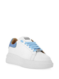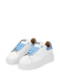 crystal-detail platform sneakers Highlights - Crafted in white - Features a shimmering blue crystal detail at the heel - Includes striking blue laces - Designed with a chunky platform sole - Equipped with a classic lace-up fastening Made in Italy Composition Lining: Calf Leather 100% Outer: Calf Suede 100%, glass 100%, Calf Leather 100% Sole: Synthetic Rubber 100%