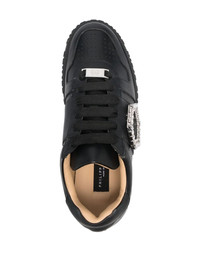 crystal-detailed leather sneakers
