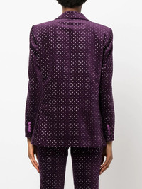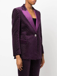 crystal-embellished blazer dark purple cotton blend crystal embellishment notched lapels front button fastening long sleeves Made in Italy Composition Lining: Viscose 100% Outer: Cotton 100% SIZE & FIT Model measurements Height 5 ft 11 in(1.8 m) Bust/Chest 31.88 in(81 cm) Hips 35.03 in(89 cm) Waist 24.01 in(61 cm) FittingInformation This piece fits true to size. We recommend you get your regular size Cut for a loose fit Made with a mid-weight non-stretch fabric Washing instructions Dry Clean Only