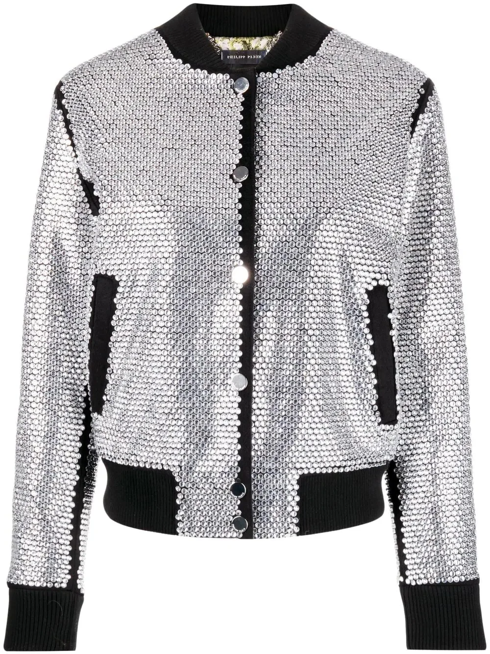 crystal-embellished bomber jacket Philipp Plein's statement slant on outerwear is evident in the design of this bomber jacket. It arrives covered in luminous crystals for a bold finish. Imported Composition Outer: glass 100%, Polyester 100% Lining: Polyester 100% SIZE & FIT Model measurements Height 5 ft 11 in(1.8 m) Bust/Chest 32.67 in(83 cm) Hips 36.22 in(92 cm) Waist 24.4 in(62 cm) Washing instructions Dry Clean Only