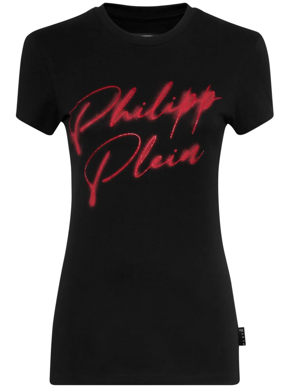 crystal-embellished cotton T-shirt Highlights - Black - Cotton - Jersey texture - Logo print to the front - Crystal embellishment - Applique logo - Logo tag - Crew neck - Short sleeves - Straight hem Imported Composition Cotton 100%