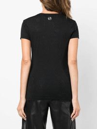 crystal-embellished cotton T-shirt black cotton jersey knit crystal embellishment logo patch to the rear round neck short sleeves straight hem Imported Composition Cotton 100% SIZE & FIT Model measurements Height 5 ft 9 in(1.75 m) Bust/Chest 32.67 in(83 cm) Hips 36.22 in(92 cm) Waist 24.8 in(63 cm) FittingInformation This piece fits true to size. We recommend you get your regular size Cut for a close fit Made with a mid-weight fabric Washing instructions Hand Wash