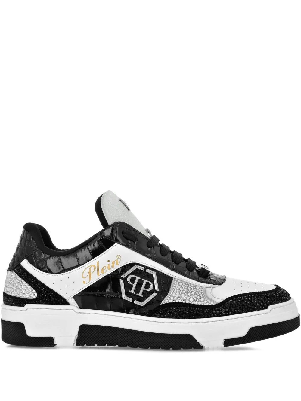 crystal-embellished crocodile-effect sneakers Highlights - Black - Embossed crocodile effect - Crystal embellishment - Rubber sole - Lace-up fastening Made in Italy Composition Outer: Polyurethane 100% Sole: Rubber 100% Lining: Polyester 100%