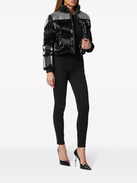 crystal-embellished cropped puffer jacket Highlights - Black - Padded design - Quilted - High-shine finish - Crystal embellishment - Silver-tone logo plaque - Funnel neck - Front zip fastening - Long sleeves - Elasticated cuffs - Two side welt pockets - Cropped - Drawstring hem Imported Composition Polyester 100%