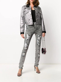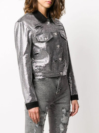 crystal-embellished denim jacket Silver-tone crystal-embellished denim jacket from Philipp Plein featuring crystal embellishments, a contrasting collar, long sleeves and a front button fastening. Imported Composition Outer: Cotton 100%, glass 100% Lining: Polyester 100% SIZE & FIT Model measurements Height 5 ft 9 in(1.74 m) Bust/Chest 32.28 in(82 cm) Hips 35.82 in(91 cm) Waist 24.01 in(61 cm) FittingInformation This piece fits true to size. We recommend you get your regular size Cut for a loose fit Made with a mid-weight non-stretch fabric Washing instructions Dry Clean Only