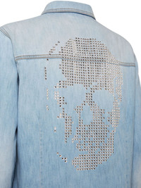 crystal-embellished denim shirt Highlights - Light blue Imported Composition Cotton 100%