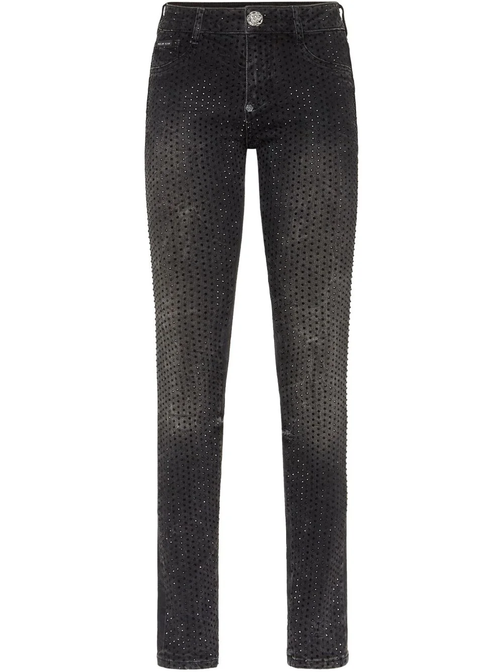 crystal-embellished jeans Highlights - Black - Concealed front fastening - Belt loops - Classic five pockets - Logo patch to the rear Imported Composition Outer: glass 100%, Cotton 92%, Elastomultiester 6%, Elastane 2%