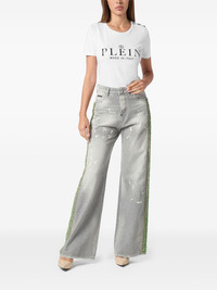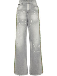 crystal-embellished jeans Highlights - Light grey - Concealed front fastening - Belt loops - Classic five pockets - Paint splatter detail Imported Composition Outer: Cotton 100%, glass 100%, Metal 100% Lining: Polyester 65%, Cotton 35%