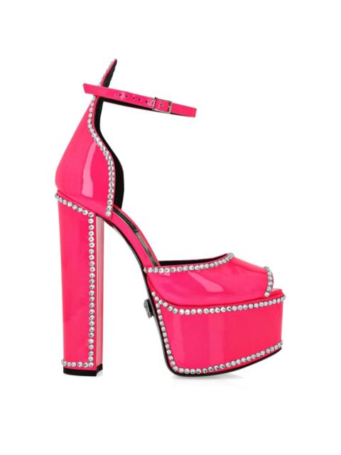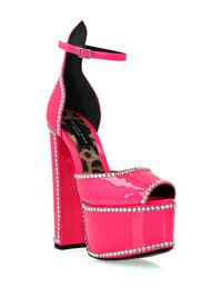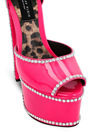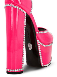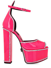 crystal-embellished leather pumps Highlights - Fluorescent pink - Leather - Crystal embellishment - Open toe - Buckle-fastening ankle strap - Branded footbed - High heel - Platform sole Made in Italy Composition Sole: Leather 100% Outer: Patent Leather 100% Lining: Leather 100%