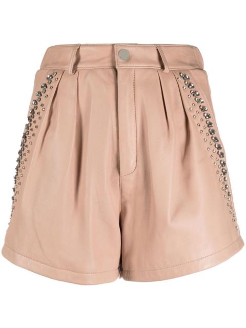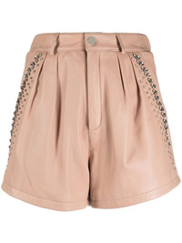 rhinestone-embellished leather shorts Highlights - Blush beige - Lambskin - Logo patch to the rear - Crystal embellishment - Pleat detailing - Elasticated waistband - Concealed fly and button fastening - Belt loops - Two diagonal pockets to the sides - Two rear welt pockets - Thigh-high Imported Composition Outer: Lambskin 100% Lining: Acetate 100% Washing instructions Specialist Cleaning